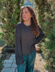 “Amelia” Knitted Distressed Dark Grey Sweater