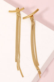 This is the perfect way to add some sparkle to your outfit pair of earrings features a distinct bar snake chain fringe earrings design. Add some personality to your outfit with this stylish accessory. Available in G and S. This item is sold in packs of 2.