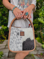 The Cowhide Sugar Satchel features genuine cowhide and full grain leather accents buffed for a natural feel.