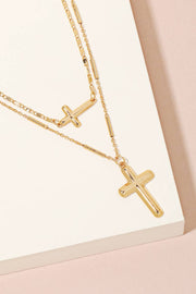 Unleash your inner fashionista with this layered necklace displays a unique double cross charm layered necklace design. The perfect way to elevate any outfit, this accessory adds a touch of elegance and style. Available in G and S. This item is sold in packs of 1.