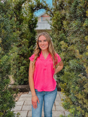Experience ultimate comfort and style with our "Alice" Drop Shoulder Button Front Blouse. This top features a split neckline and short sleeves, perfect for any casual occasion. Made from 100% polyester, it is both solid and woven, making it a versatile addition to your wardrobe. Not lined for a light and breezy feel.