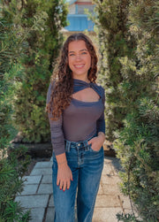 “Julie” Front Twist Cut Out Detail Long Sleeve Bodysuit