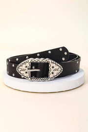 Uniquely designed and endlessly stylish, this belt presents a striking intricate metallic western oval buckle design. This item is ideal for those who want to add some personality to their wardrobe without being too bold. Available in BK and WH. This item is sold in packs of 1. This belt approximately measures: Length: 41 Inches This belt is made with 100% Polyurethane.