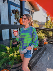 Enjoy cozy comfort with the "Jenny" Stripe Oversized Sweater, a casual knit top perfect for transitional seasons. Featuring a stylish stitch detail and relaxed drop shoulder design, this long sleeve sweater blends 54% polyester and 46% rayon for softness and durability. Ideal for early autumn wear, it offers effortless style with a comfortable oversized fit.