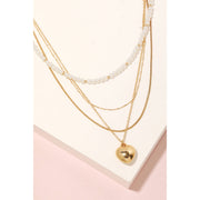 Metallic Heart Pendant Layered Necklace