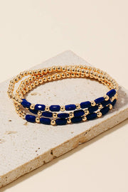 A unique and stylish piece that sets you apart, this bracelet adds a distinctive mixed metallic and glass beaded set design. Perfect for adding some texture and dimension to any outfit, this bracelet is a must-have. Available in GDCRM, GDLTGY, GDMIN, GDNAY and GDPNK. This item is sold in packs of 1.