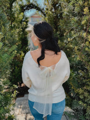 “Vanessa” V-Neck Drop Shoulder Back Bow Tie Detail Sweater