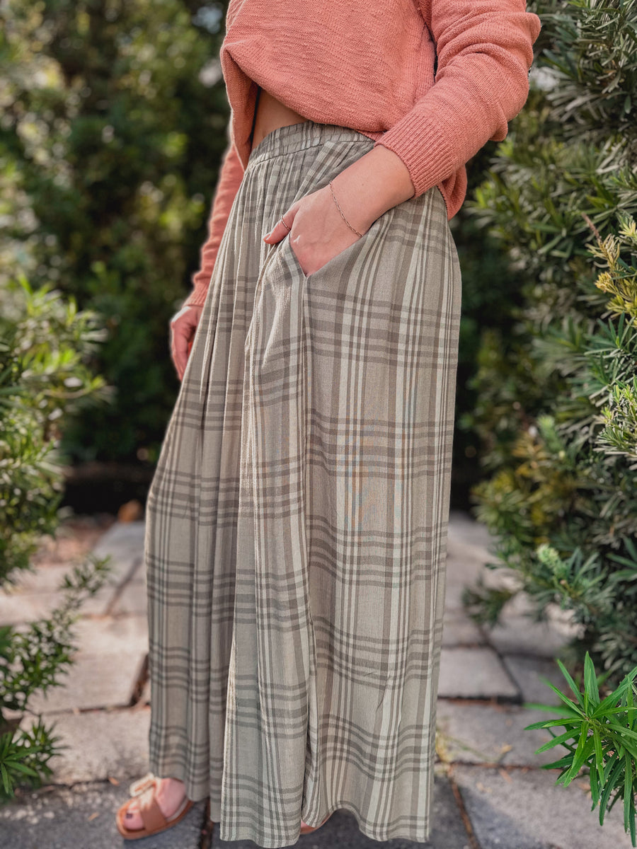 Elevate your wardrobe with this charming plaid midi skirt that combines timeless style with everyday comfort. Featuring a flattering pleated design and elastic waistband for effortless wear, this lightweight piece transitions seamlessly from casual outings to polished occasions. The classic plaid print adds visual interest while the structured banding ensures a refined silhouette. Perfect for those who appreciate quality craftsmanship and versatile fashion that works as hard as you do.