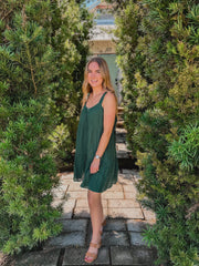 Frances Dress is designed in breathable cotton gauze fabric with a back self tie shoulder straps, pockets, and full tiered skirt.