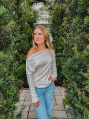 Lula Thermal Top features an off-shoulder neckline, a snug, figure-flattering fit, and raw edge detailing.