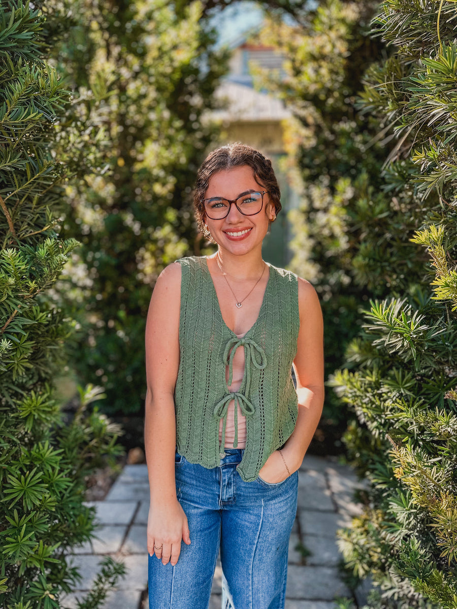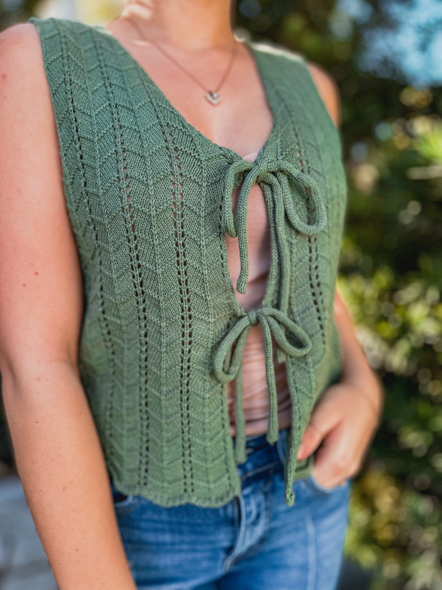 Discover effortless layering with this charming knit vest featuring a distinctive wavy hemline and convenient tie closure. The "Zoie" vest combines comfort with style, making it the perfect piece to elevate any outfit. Whether worn over a crisp white shirt or paired with your favorite tee, this versatile sweater vest adds dimension and texture to your wardrobe. The soft knit construction and thoughtful design details make it an essential addition for anyone seeking both warmth and sophistication in their everyday style.