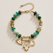 * Charms: Choose from combinations like Cross and Gem, Lock and Key, Hamsa and Evil Eye, Cherries and Flowers, and more
