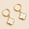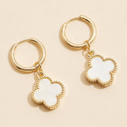 Update your stylish look with our fashionable flower Shape Shell Charm Hoop Earrings. These hoops feature clover-shaped shell charms that add a touch of elegance to your outfit. Elevate your fashion game with this trendy accessory.