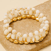 Make a statement, this bracelet emanates an elegant stone and metallic beaded set design. This versatile bracelet adds a touch of elegance to any outfit.This bracelet is made with 70% Stone and 30% Alloy.