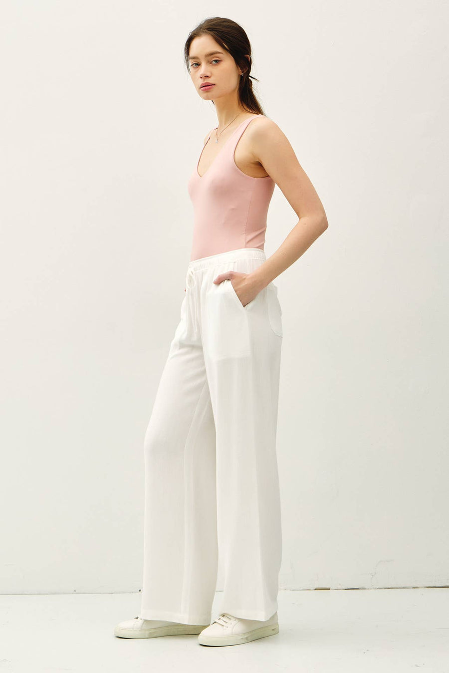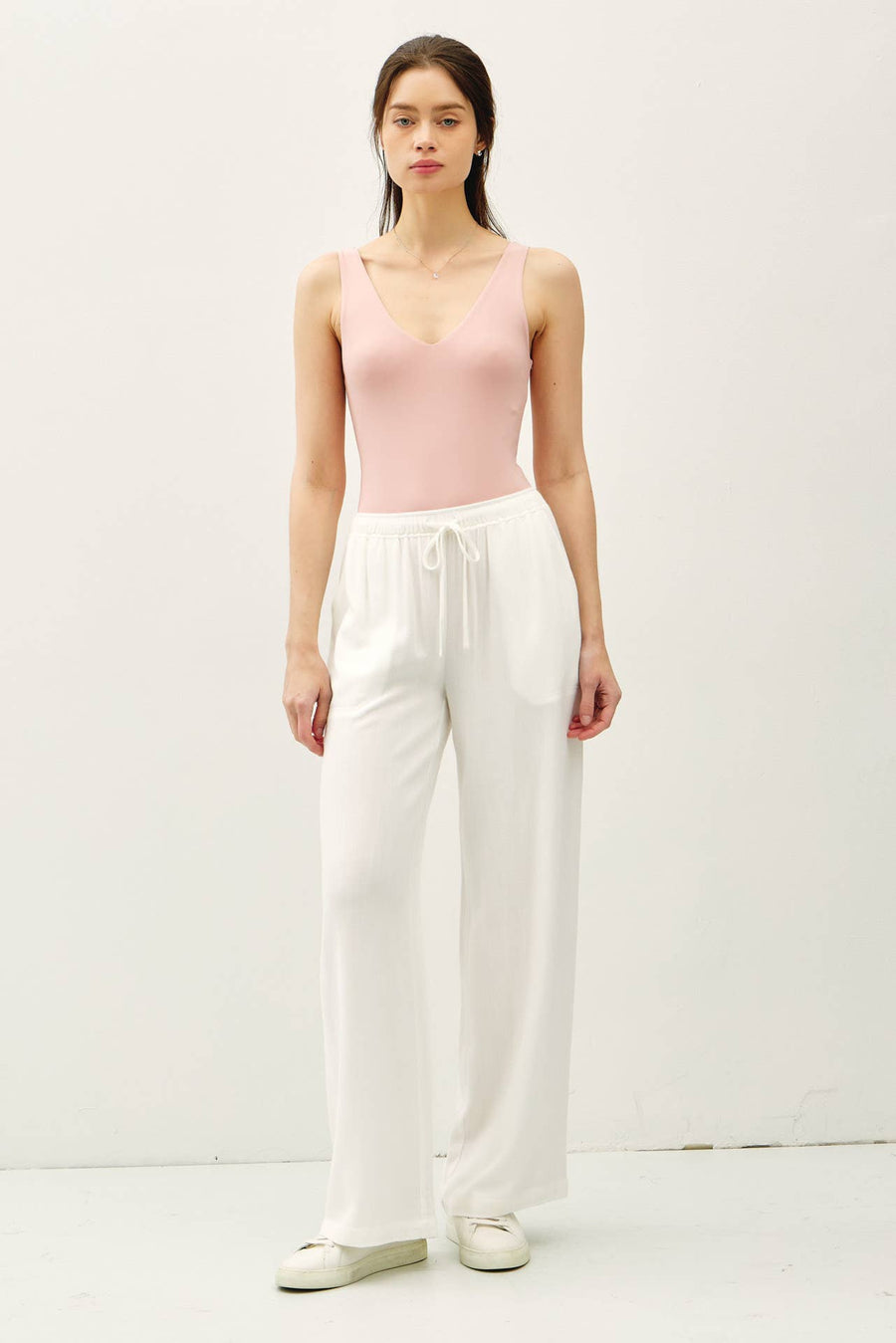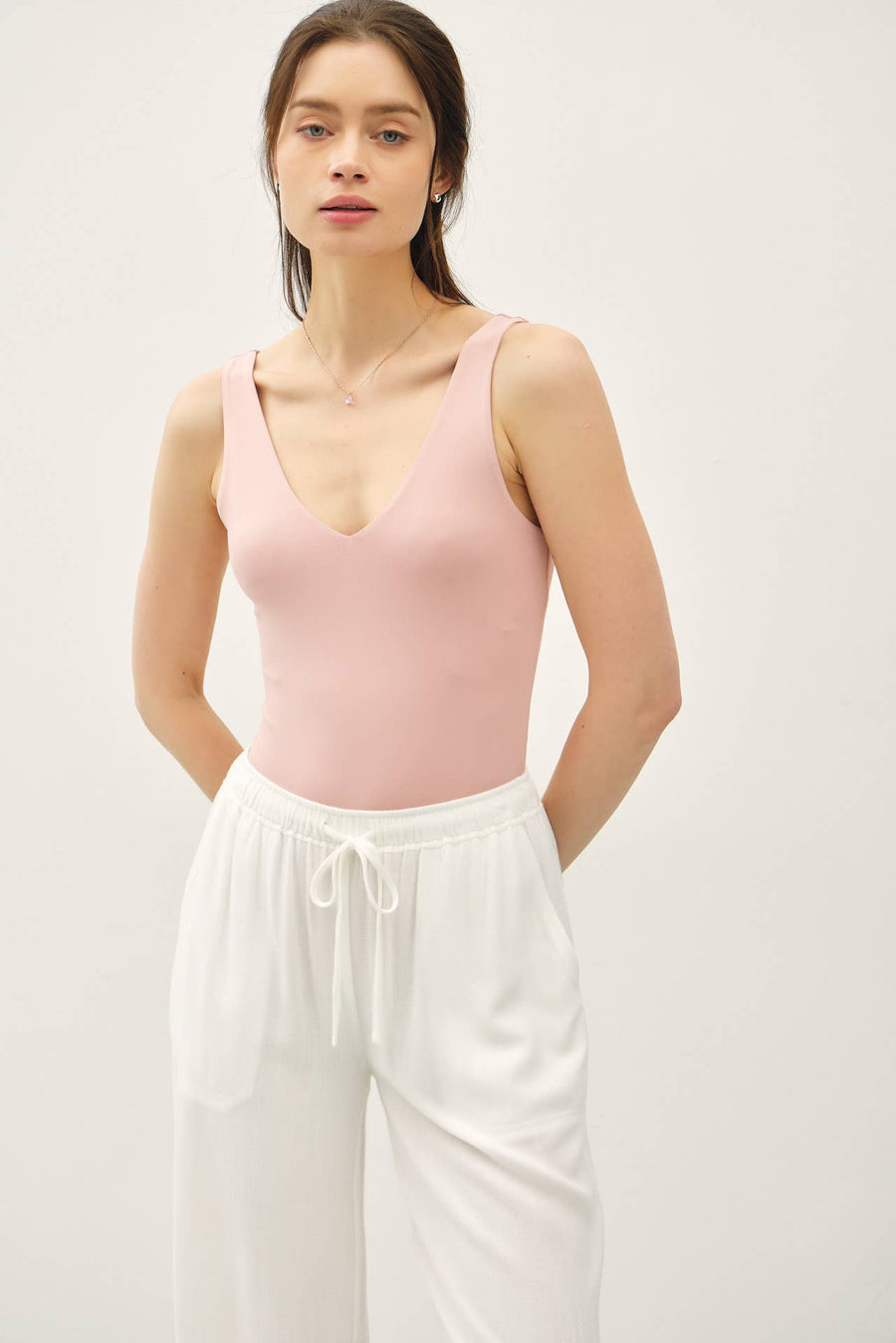 "Bri" Rose Basic V-Neck Tank Bodysuit