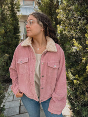 “Beatrice” Pink Corduroy Sherpa Jacket