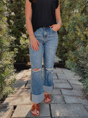“Charlie” High Rise Double Cuffed Baggy Wide Jeans