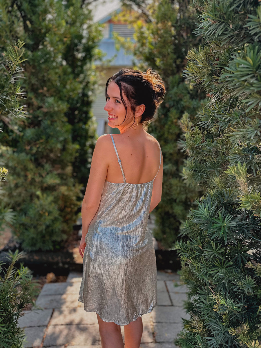 Get ready to sparkle and shine in our "Kaylee" Cowl Neck Sparkle Mini Dress! This stunning dress features a cowl neck and spaghetti straps, perfect for showing off your shoulders. With its sparkling fabric, you'll be the center of attention at any event. Complete your wardrobe with this must-have dress!