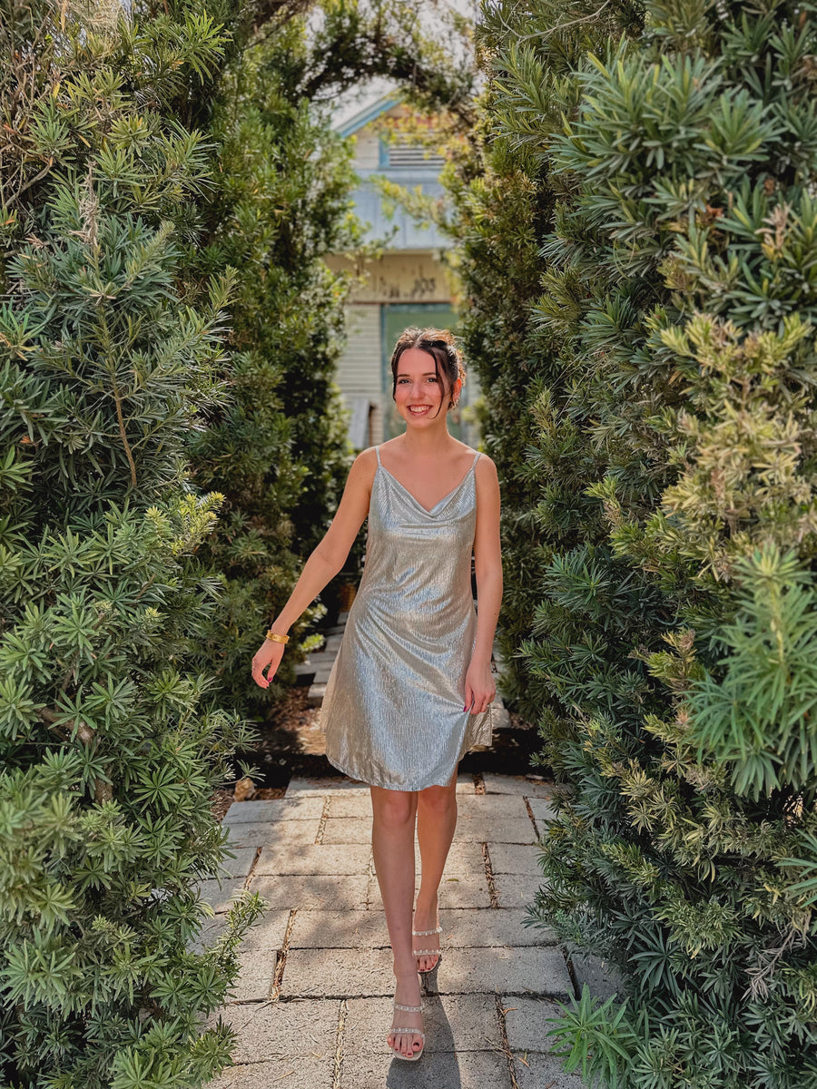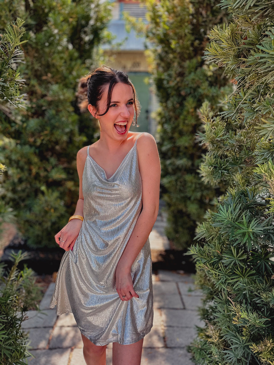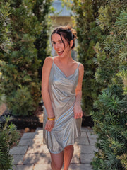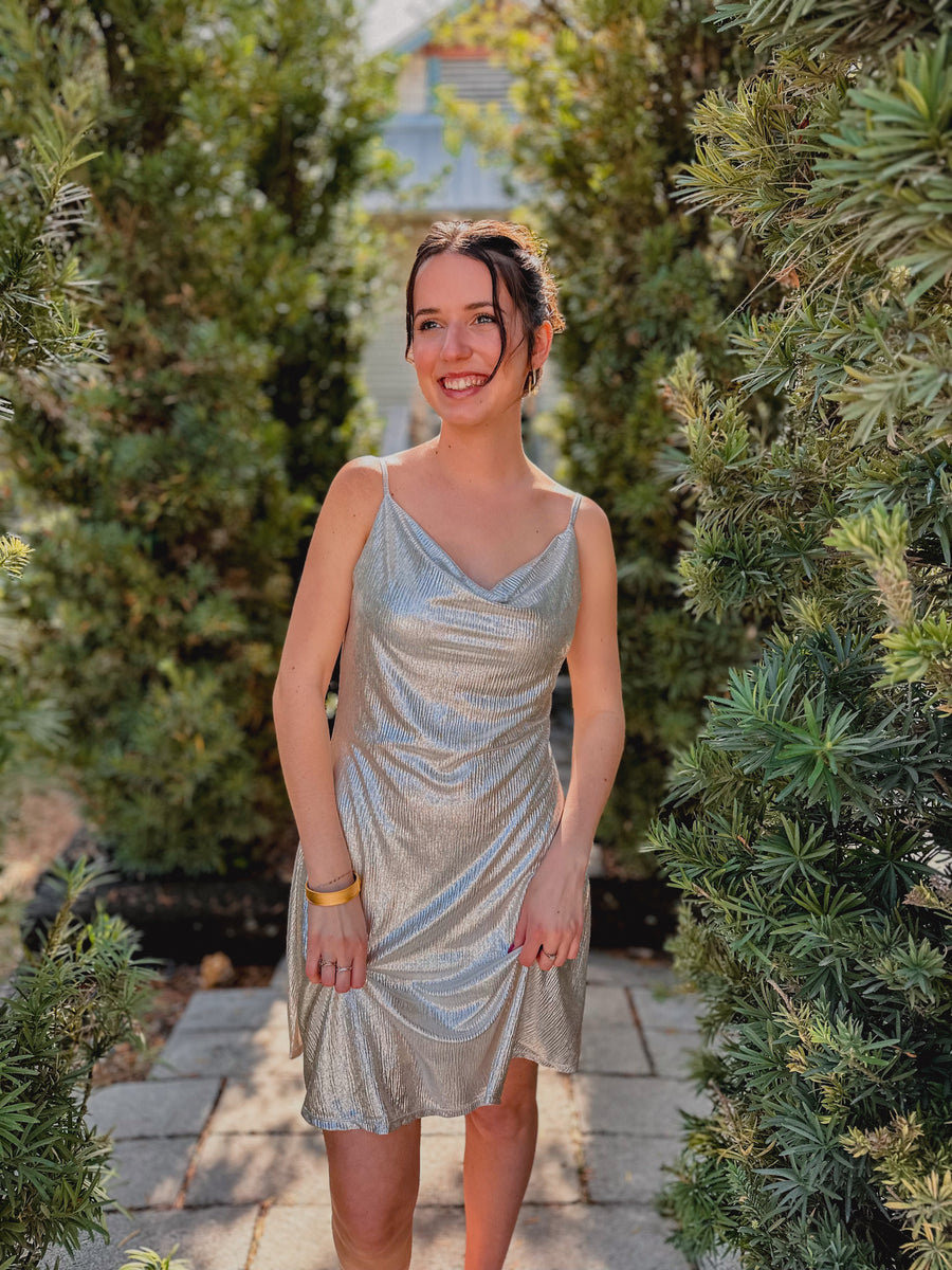 "Kaylee" Cowl Neck Sparkle Mini Dress