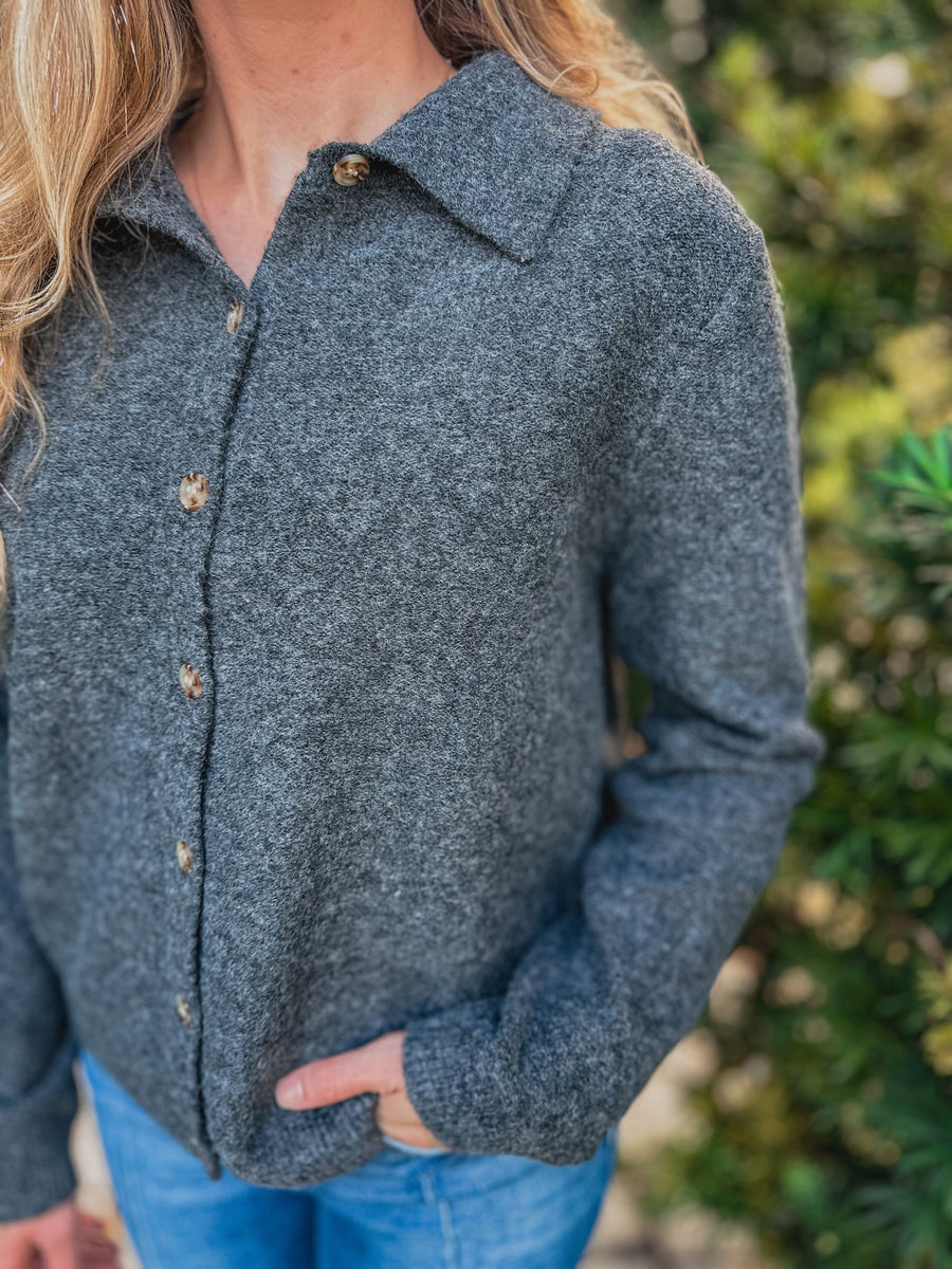"Elenor" Gray Button Up Sweater