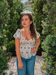 “Hannah” Embroidered Daisy Puff Sleeve Top