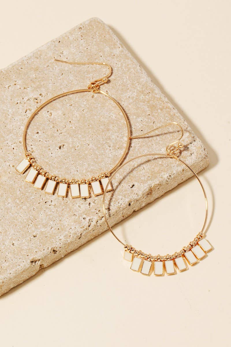 This piece is designed to be both stylish and functional, this pair of dangle earrings contains a special epoxy charms hoop design. Achieve a perfect balance of style and sophistication with this versatile pair of dangle earrings, the ultimate choice for the fashion-savvy individual. This pair of dangle earrings is made with 50% Zinc50% Steel.