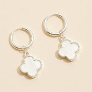 Update your stylish look with our fashionable flower Shape Shell Charm Hoop Earrings. These hoops feature clover-shaped shell charms that add a touch of elegance to your outfit. Elevate your fashion game with this trendy accessory.