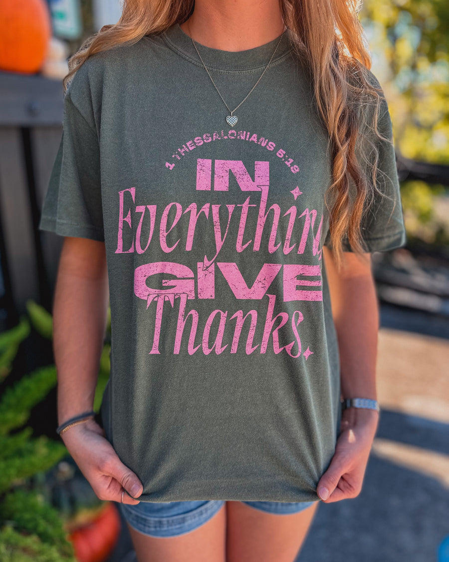 Zoom "Give Thanks" Pink & Green Graphic Tee