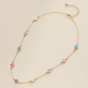 This gold charm necklace features delicate enamel accents for a stylish and minimalist look. Perfect for layering or wearing alone, it's an elegant addition to any jewelry collection.