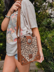 The Great Plains Lola Crossbody features luxurious hair on hide with leopard print and copper foil accents. Finished with genuine full grain oiled and waxed leather makes this the perfect accessory for any outfit.