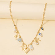 Heart Pearl Bows And Pearl Charms Chain Necklace