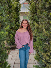 “Camille” Purple Pink Knit Boat Neck Sweater