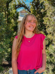 Constructed with a waffle knit fabric, this top features flutter sleeves and is designed to fit plus size figures. Made from a blend of 80% polyester, 16% Rayon, and 4% Spandex, this top offers a comfortable and stylish option for plus size individuals.