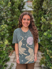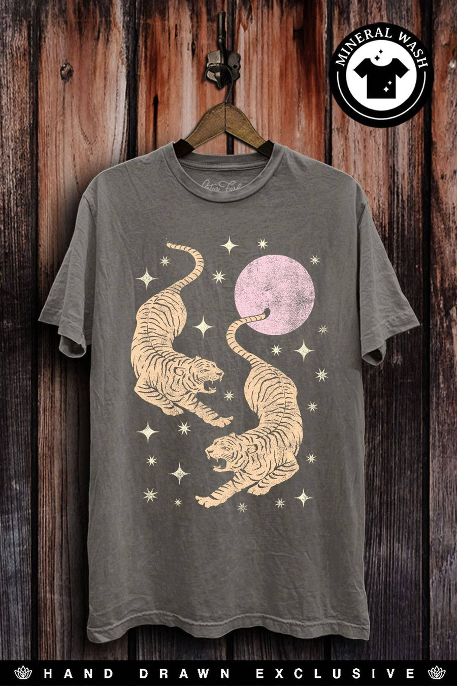 The Lotus Boyfriend Tee / Mineral Washed - Short Sleeve crew neck graphic tee, loose in all the right places with slightly dropped sleeves. Made in our soft 100% cotton fabric - Mineral Washed. The graphics and main labels are silk screen printed in-house at Lotus Fashions printing factory headquarters in Los Angeles.