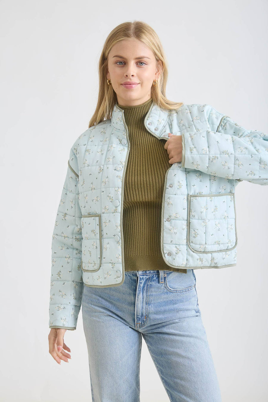 "Tara" Quilted Floral Button Down Puffer Jacket