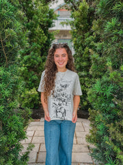 This short-sleeve crew neck graphic tee features a relaxed boyfriend fit with gently dropped sleeves for a comfortable, flattering look. Crafted from soft, 100% cotton fabric with a mineral-washed finish, it offers a cozy feel you'll love wearing.