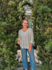 Textured knit sweater featuring a v-neckline, long sleeves, hi-lo hem & slit details on side, reverse-seam details throughout and a relaxed-fit. -Model is 5'9" and wearing a S/M