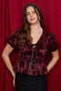 "Genie" Satin Velvet Floral Puff Sleeve Blouse