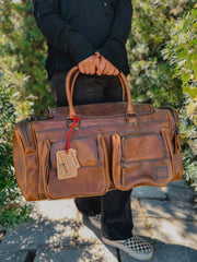 The Tuscan Traveler Duffle is constructed from genuine full grain leather finished with oils and waxes for a natural feel.