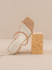 Rhinestones in just the right shade adorn this absolute must-have summer heel.